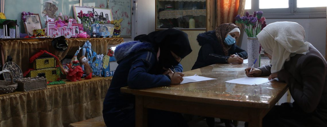 أجرت كوادر برنامج “التعافي المبكّر” في مركز منظمة الروَّاد للتعاون والتنمية بمدينة سلقين، شمال سورية، اختباراتٍ للمستفيدات من مشروع “التدريب المهني وسُبل العيش” لخمسِ مهنٍ يدوية، وذلك صباح الأحد 12/12/2021.