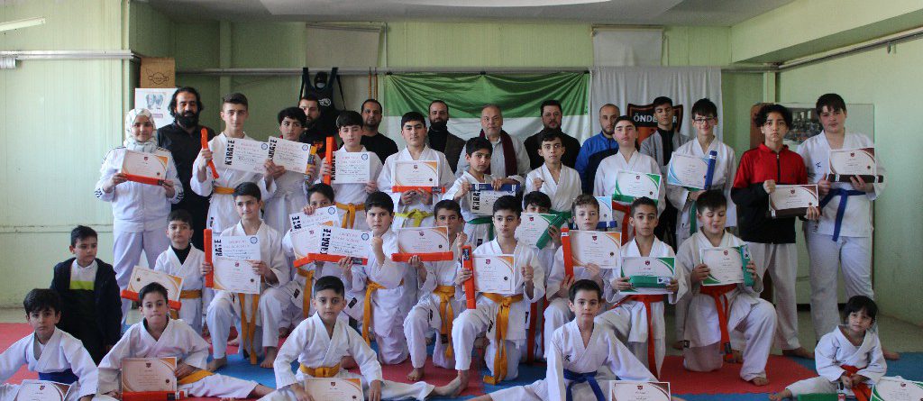 ختام الحفل كان بتوزيع الأحزمة والشهادات المعتمدة من الاتحاد التركي للكاراتيه على 31 لاعباً ولاعبة، بفئات الأشبال، والناشئين، والشباب، فنال لاعب واحد الحزام الأصفر، ونال أربعة لاعبين الحزام الأخضر، وأربعة نالوا الحزام الأزرق، ونال 18 لاعباً الحزام البرتقالي، فيما حصل سبعة لاعبين على الحزام البني (A).