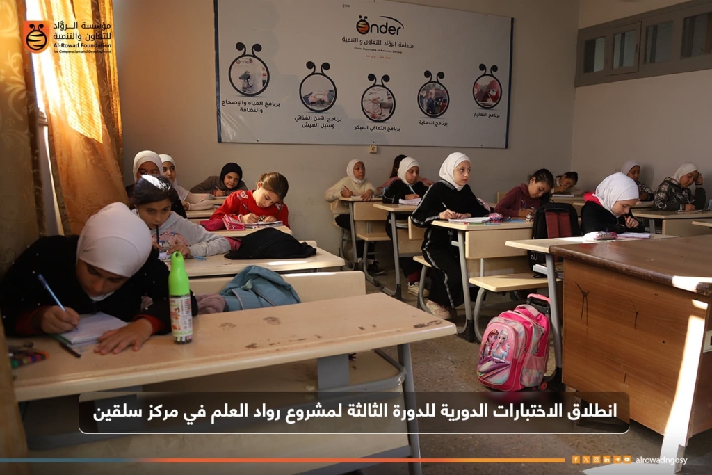 أقامت كوادر مشروع روَّاد العلم في مدينة سلقين الاختبارات الدورية الثالثة لمستفيدي دعم التحصيل العلمي والتعليم الإدراكي والبالغ عددهم 264 مستفيداً ومستفيدةً.