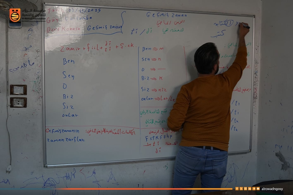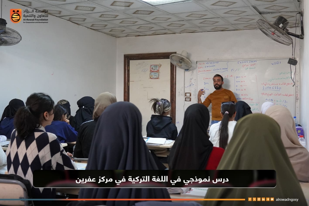 قدّم كوادر مشروع “أثر” التابع لمؤسسة الروّاد للتعاون والتنمية درساً نموذجياً في اللغة التركية ضمن الأنشطة التعليمية المقامة في مركز عفرين، بمشاركة 23 طالبة من طالبات الصف التاسع.