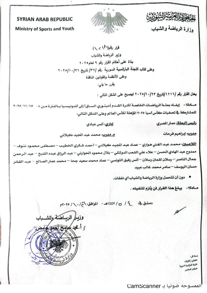 يشارك لاعبو نادي الروّاد الرياضي، ضمن البعثة الرياضية السورية المشاركة في تصفيات كأس آسيا 2025 المؤهلة لكأس العالم لكرة القدم لأصحاب الهمم (مبتوري الساق).