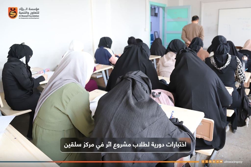 أقامت كوادر مشروع أثر في مكتب سلقين اختبارات دورية شملت مواد اللغة العربية واللغة الإنكليزية والرياضيات والعلوم والفيزياء والكيمياء.