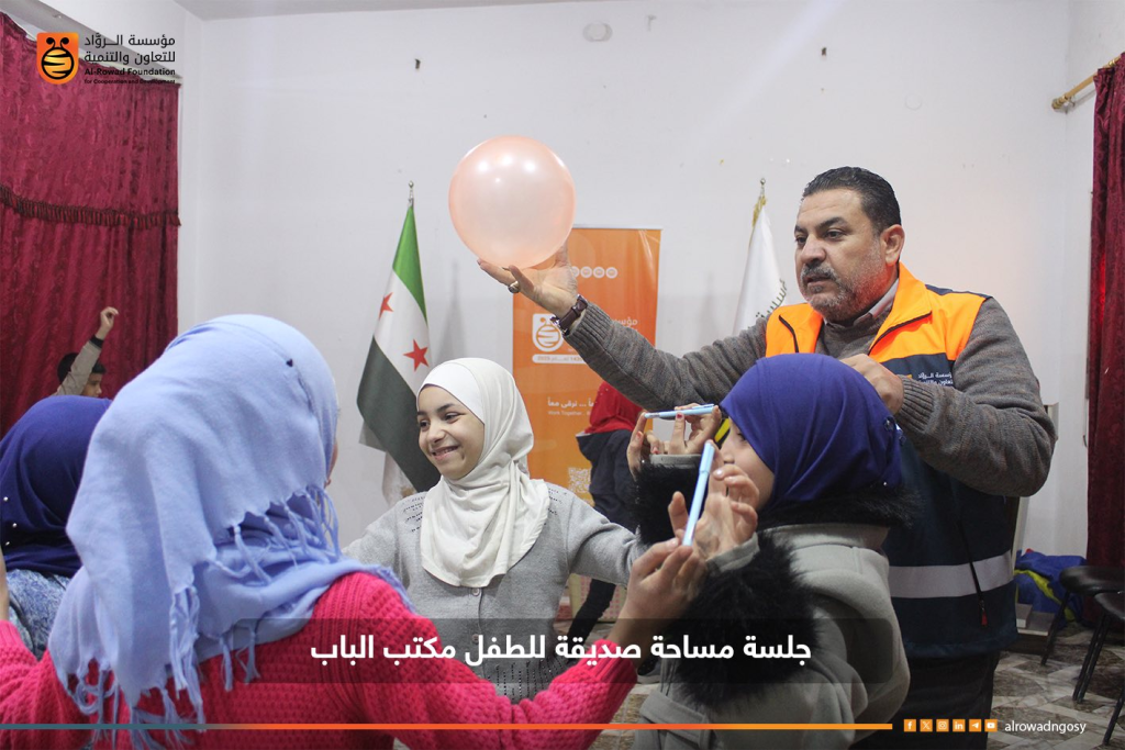 جانب من جلسات المساحة الصديقة للطفل في مدينة الباب