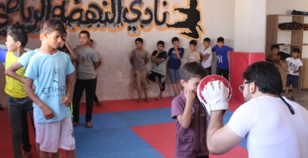 تنظيم حصة مشتركة في رياضة الكيك بوكسينغ لطلاب مركزي الباب وسوسيان في نادي النهضة الرياضي
