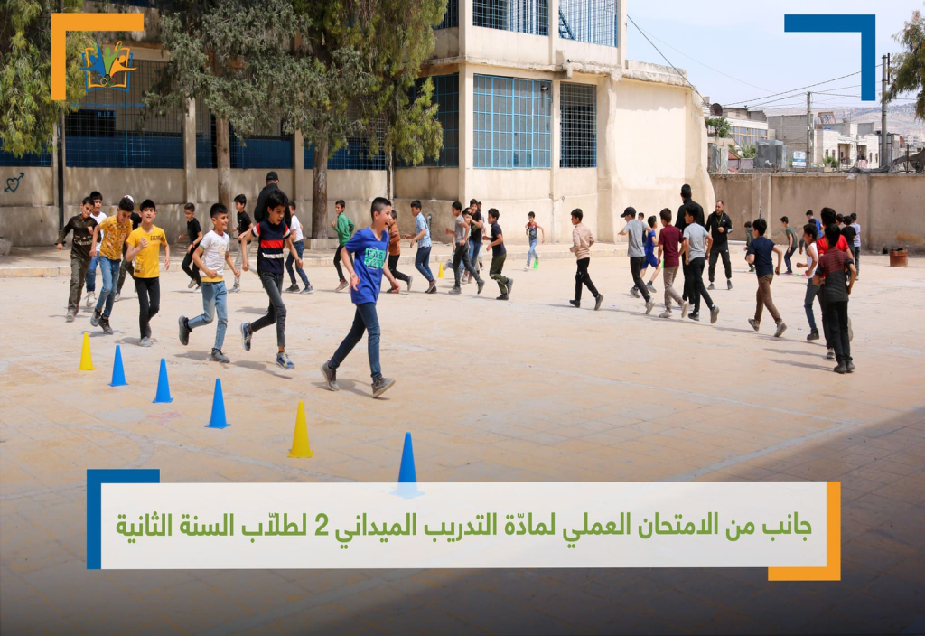 التعليم | 5. معهد النربية البدنية والرياضية 9 - 5 - 2025 عفرين جانب من الامتحان العملي لمادة التدريب الميداني 2 لطلّاب السنة الثانية في معهد التربية البدنية والرياضية-الروّاد